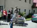 Der zweite Anfahrpunkt war das Kyffhäuserdenkmal, welches vom Norden angefahren werden sollte. Mittlerweile hatte sich der Regen verzogen! Damit ermöglichte der Fahrtleiter die herrlichen Kurven des Kyffhäuser gleich doppelt zu erleben. Dabei war der Wert eines Gefälleschildes und ein Aufkleber waren einzusammeln. Nur 20 km weiter hieß der Kontrollort Sondershausen. Ein selbstgestoppter Slalom war auf Bestzeit zu fahren. Entscheidend war am Ende des Slaloms nicht zu vergessen vom Motorrad zu springen und die Stoppuhr zu drücken!