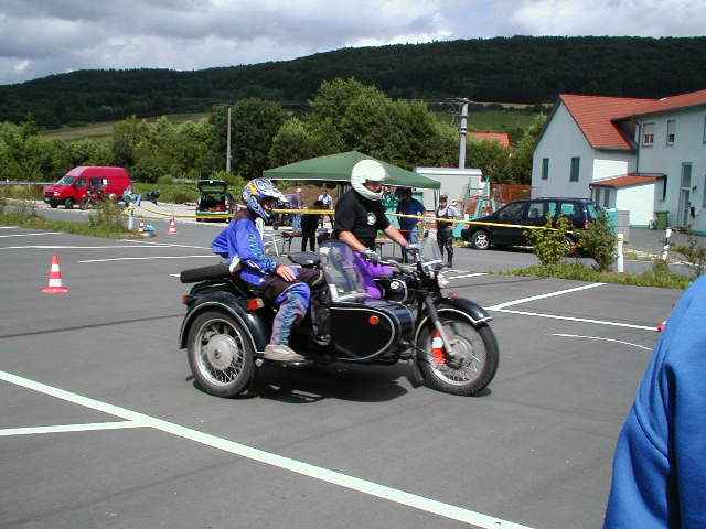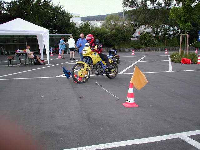 Ab 08.30 Uhr der erste Start. Die erste Runde führte nur eine kurze Schleife in den Wald auf einen abschüssigen Weg. Dort war eine Rollprüfung auf Gleichmäßigkeit zu fahren. Tacho, Uhren und ähnlichen wurden zugeklebt, also war Sekunden zählen angesagt. Dann nach der nächsten Runde das gleiche nochmals.
