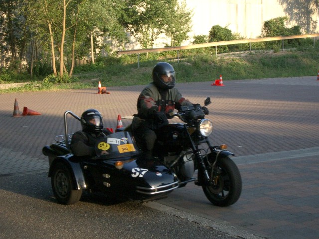 Richtung Osten führte die Strecke nach Neustadt a. d. Aisch. Sportfreunde aus Freital hatten beim dortigen Motorradhändler einen Slalom aufgebaut.