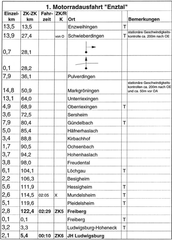 Die "1. Motorradausfahrt Enztal" war schwer. Es gilt das gleiche wie nach Jahnatal. Lösbar sollten die Orientierungsaufgaben für alle Fahrer sein. Damit die Attraktivität des Zweirad-Rallyesport nicht leidet. Wir freuen uns jedoch schon auf die "2. Enztaler Motorradausfahrt".