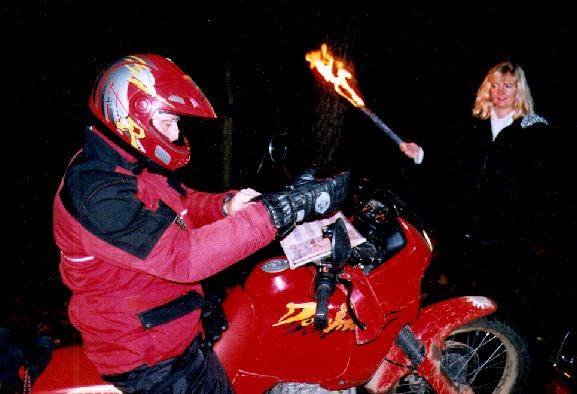 Als letzten Lauf im Rallyesport der Saison 2000 veranstaltete Falk Preusche vom MC Freital im ADMV die "Rallye Weißeritz 2000" am 04. November. Zwei Handvoll Motorradfahrer waren gekommen um diese zu erwartende harte Rallye unter die Räder zu nehmen. Der anhaltende Regen die Tage zuvor verhieß nichts Gutes. Die Fahrer hatten sich auch für die Nacht gerüstet.| 1. Rene´ Friedrich | MC Görlitz | KTM Duke |