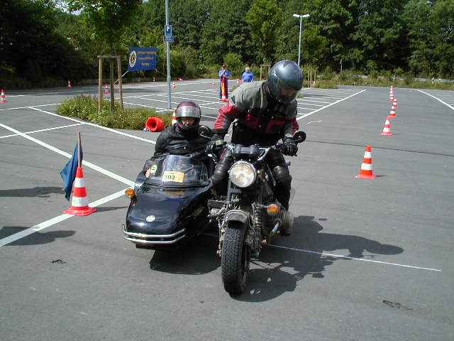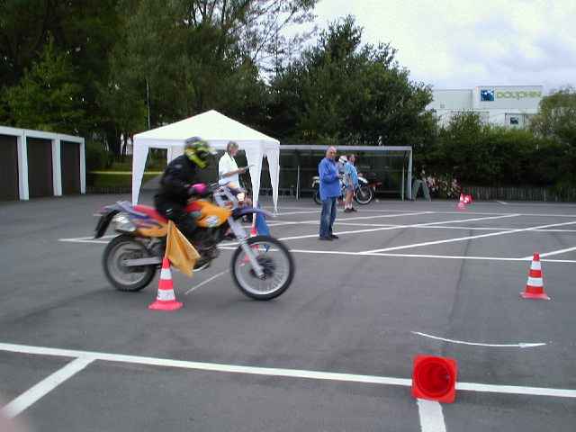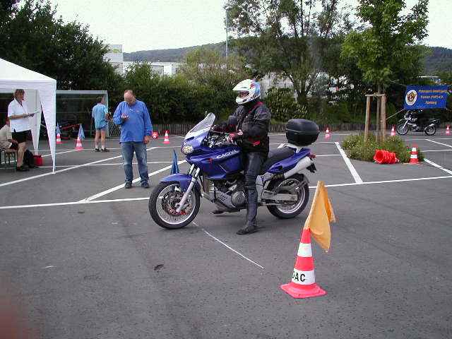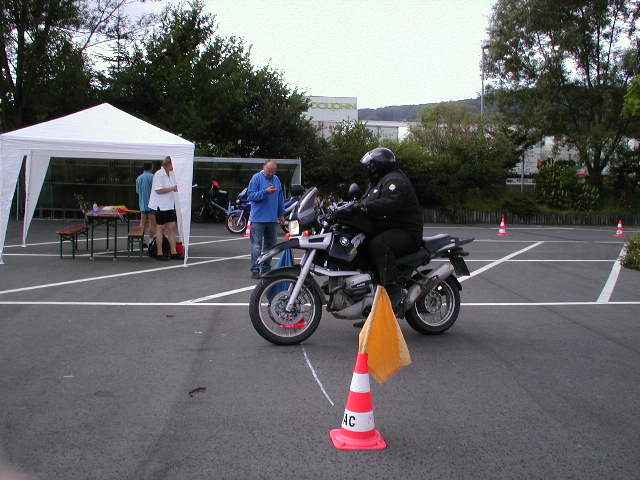 Ab 08.30 Uhr der erste Start. Die erste Runde führte nur eine kurze Schleife in den Wald auf einen abschüssigen Weg. Dort war eine Rollprüfung auf Gleichmäßigkeit zu fahren. Tacho, Uhren und ähnlichen wurden zugeklebt, also war Sekunden zählen angesagt. Dann nach der nächsten Runde das gleiche nochmals.