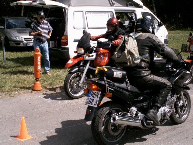 Mit einer Rollprüfung wurde gestartet. Getreu dem Motto "Wer sein Motorrad schiebt ...!" konnte hier schon gute Punkte sammeln.