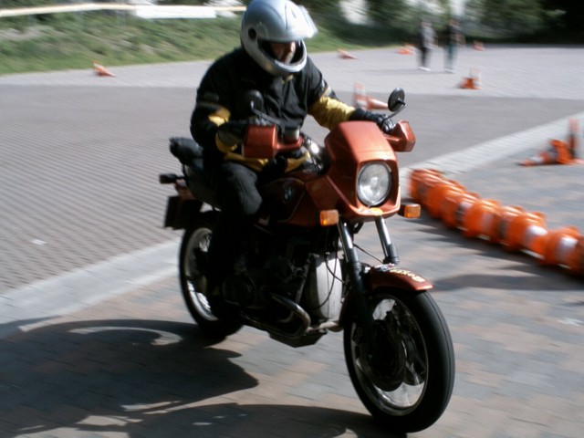 Richtung Osten führte die Strecke nach Neustadt a. d. Aisch. Sportfreunde aus Freital hatten beim dortigen Motorradhändler einen Slalom aufgebaut.